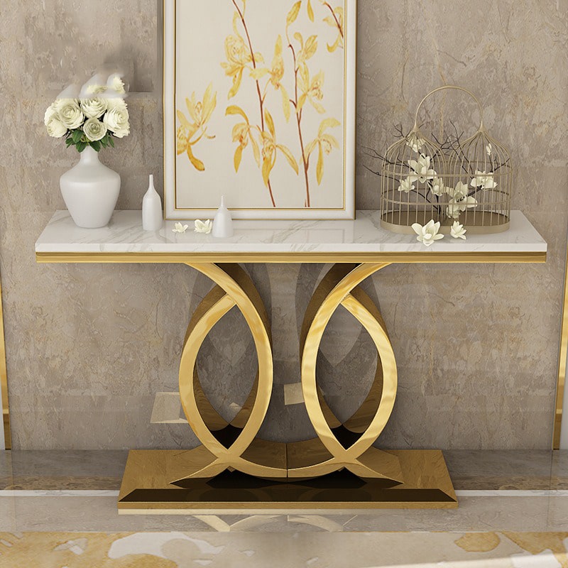 Với thiết kế tối giản nhưng đầy sang trọng, bàn console giúp tạo ra không gian phòng khách hiện đại, đẳng cấp. Chân bàn mạ vàng PVD kết hợp với mặt bàn đá tự nhiên tạo ra sự tương phản hoàn hảo, mang đến vẻ đẹp quý phái mà không mất đi sự hài hòa của không gian.