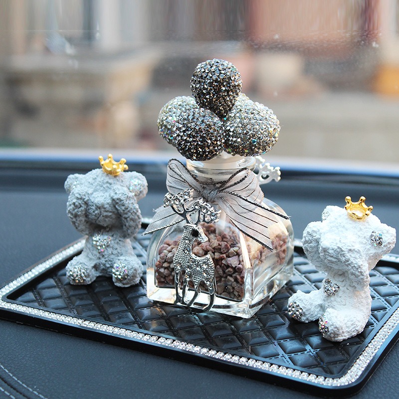 Bộ gấu Teddy và bình bóng gắn đá trang trí xe hơi đẹp mắt