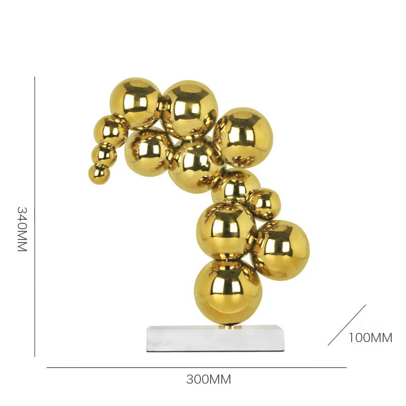 Mô hình bóng mạ điện là sự kết hợp của các bóng tròn được gắn kết với nhau thành một khối uốn lượn, tạo ra cảm giác động, như thể các quả bóng đang chuyển động nhẹ nhàng. Đây là đặc điểm nổi bật của sản phẩm, giúp tạo ra sự linh hoạt trong không gian mà không cần phải quá cầu kỳ. Đặc biệt, chất liệu thép không gỉ sáng bóng càng làm nổi bật vẻ đẹp sang trọng, dễ dàng hòa quyện với ánh sáng tự nhiên hoặc ánh sáng đèn trong phòng khách, khiến không gian trở nên lung linh và đầy sức sống.