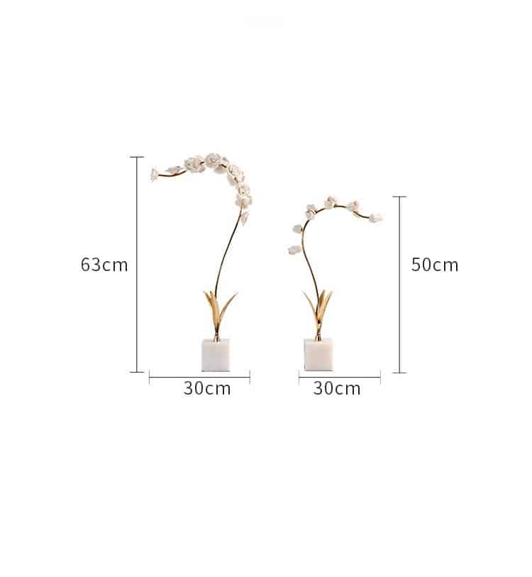Hợp kim được sử dụng cho phần lá và thân của cành hoa, giúp tăng độ bền và sự chắc chắn cho sản phẩm. Bề mặt hợp kim mạ vàng hoặc mạ bạc giúp tạo sự nổi bật và sang trọng, mang đến một điểm nhấn đẹp mắt cho không gian phòng khách của bạn.
