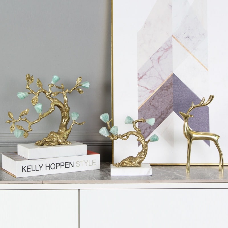 Trong không gian sống hiện đại, việc chọn lựa đồ decor phòng khách phù hợp không chỉ giúp làm đẹp không gian mà còn mang lại nhiều ý nghĩa phong thủy tích cực. Một trong những món đồ không thể thiếu trong trang trí phòng khách là cây tài lộc may mắn. Với chất liệu đồng kết hợp cùng đá thạch anh, cây tài lộc không chỉ là một món đồ decor phòng khách đẹp mắt mà còn mang đến nhiều lợi ích về phong thủy, đặc biệt là trong việc thu hút tài lộc và may mắn cho gia đình.