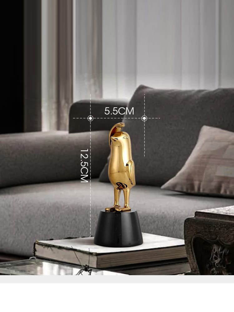 Mô hình chim cánh cụt dễ thương là món đồ decor phòng khách có thiết kế độc đáo và đẹp mắt. Với hình dáng dễ thương, những chú chim cánh cụt làm từ đồng này sẽ khiến không gian phòng khách của bạn thêm phần sinh động và thu hút. Sự kết hợp giữa chất liệu đồng và thiết kế tinh xảo mang lại vẻ đẹp sang trọng, đồng thời không làm mất đi sự đáng yêu của loài chim này.