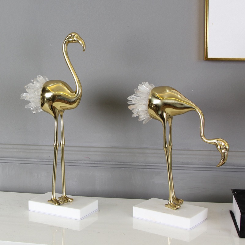Chim hồng hạc pha lê trang trí kệ tivi đẹp mắt