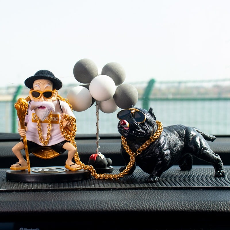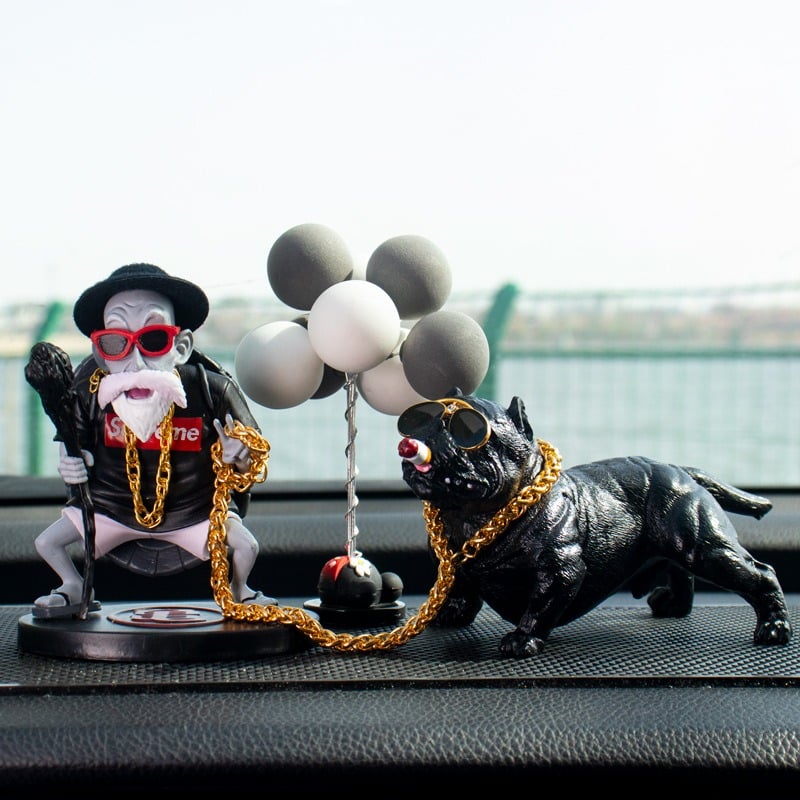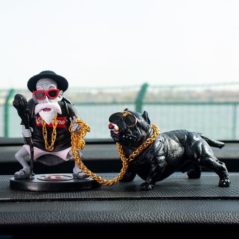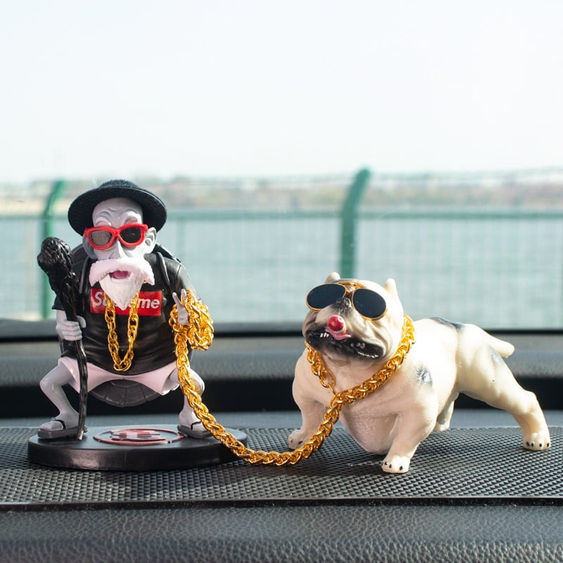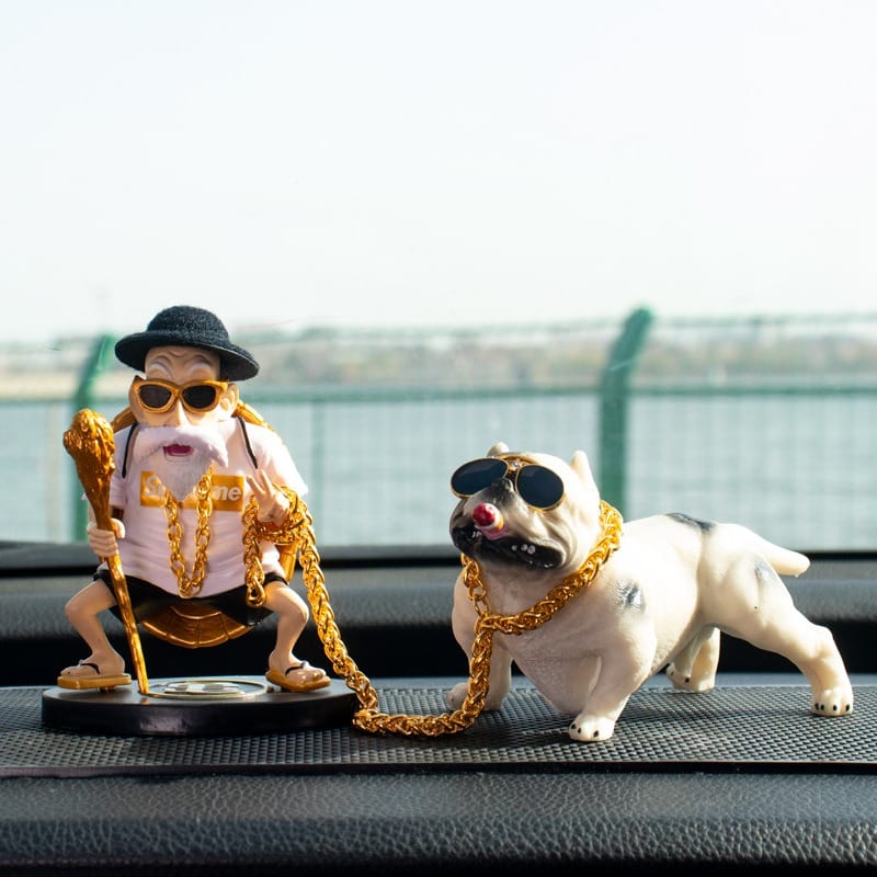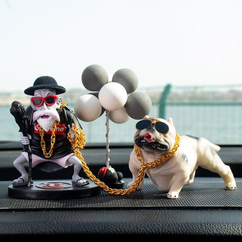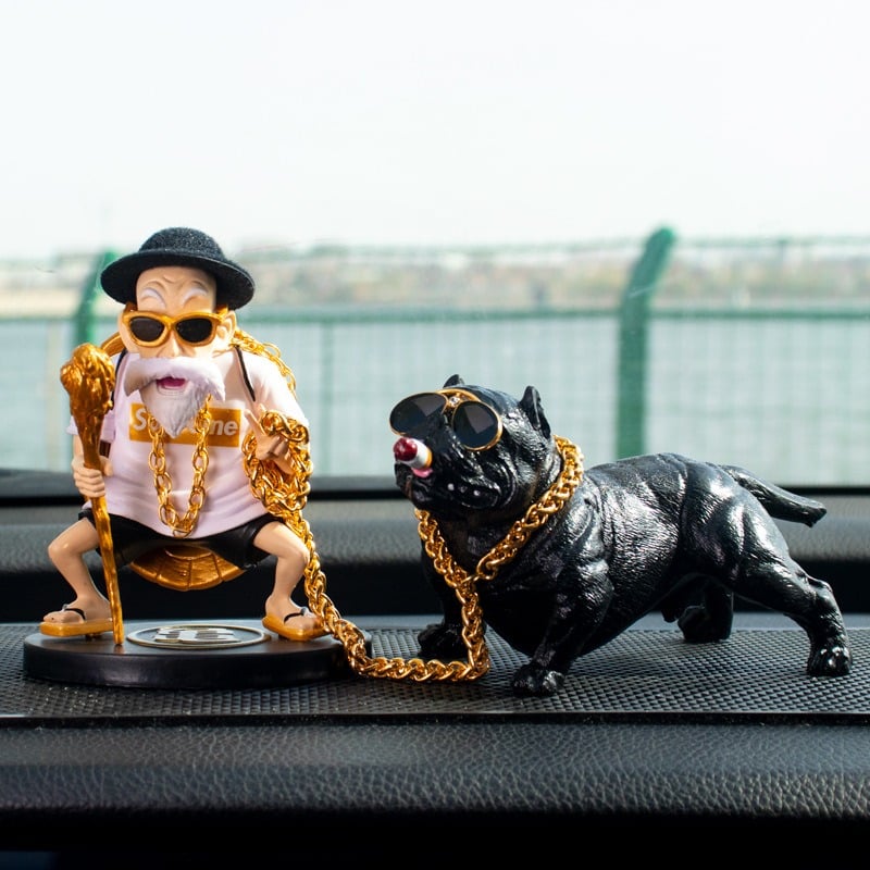 Cụ rùa dắt chó phong cách rocker trang trí nội thết oto