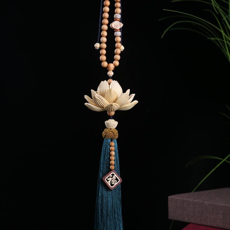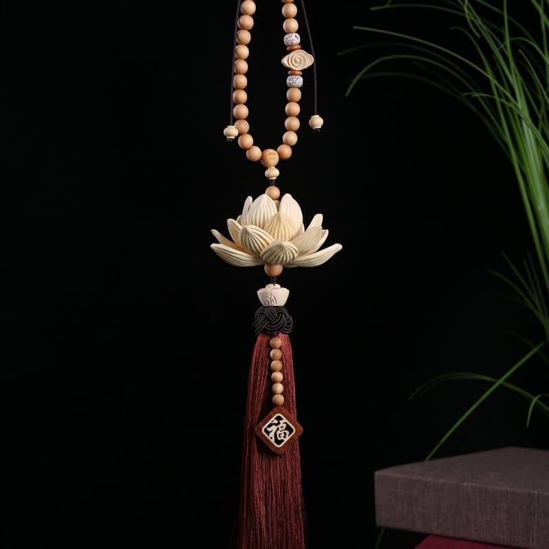 Dây Treo Phong Thủy Xe Hơi Hoa Sen May Mắn Điêu Khắc 5D Thủ Công