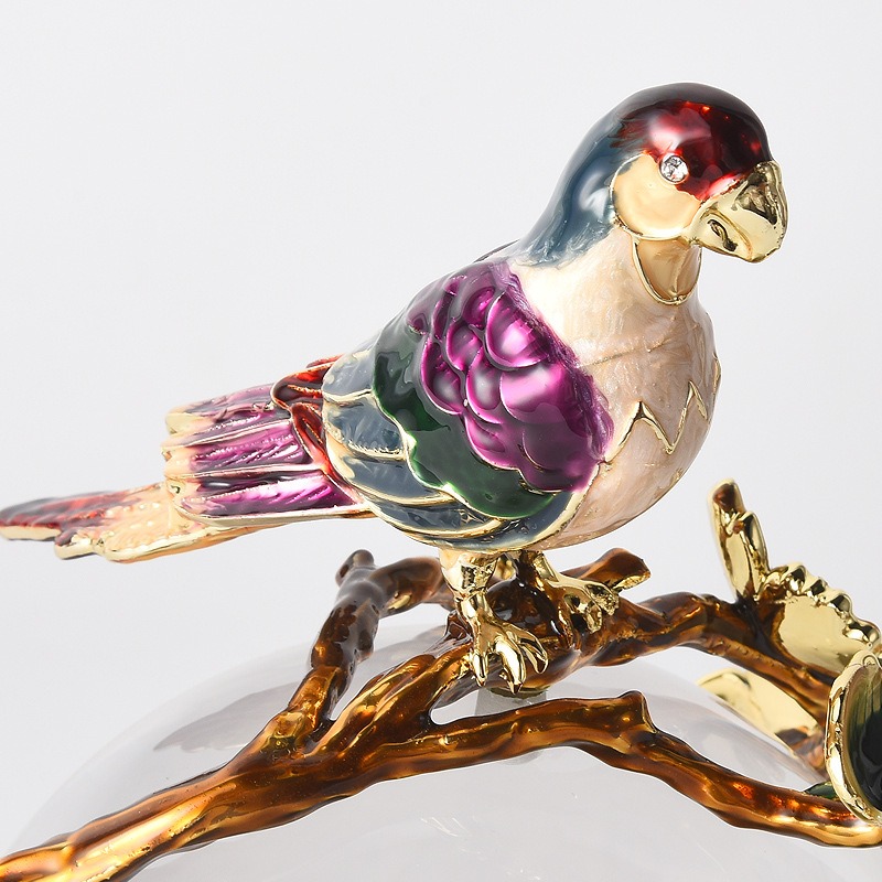 Decor chim vẹt đứng quả cầu pha lê CD987