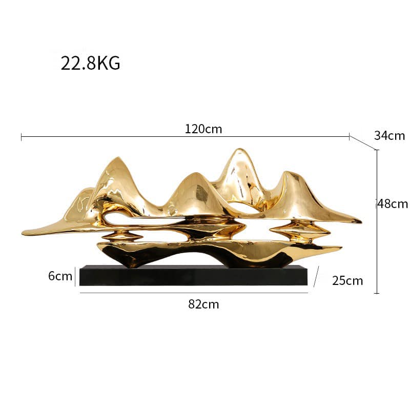 Mô hình đồi núi trùng điệp trang trí kệ phòng khách là một món decor tuyệt vời cho những không gian hiện đại. Được thiết kế với hình dáng những dãy núi chồng chéo, sản phẩm này không chỉ mang lại sự tinh tế mà còn thể hiện sự sáng tạo độc đáo, phá vỡ những khuôn mẫu cứng nhắc của các món đồ trang trí thông thường. Màu vàng sáng bóng kết hợp với đường nét thiết kế uyển chuyển tạo ra một tác phẩm nghệ thuật đặc sắc, giúp nâng tầm không gian sống của bạn.