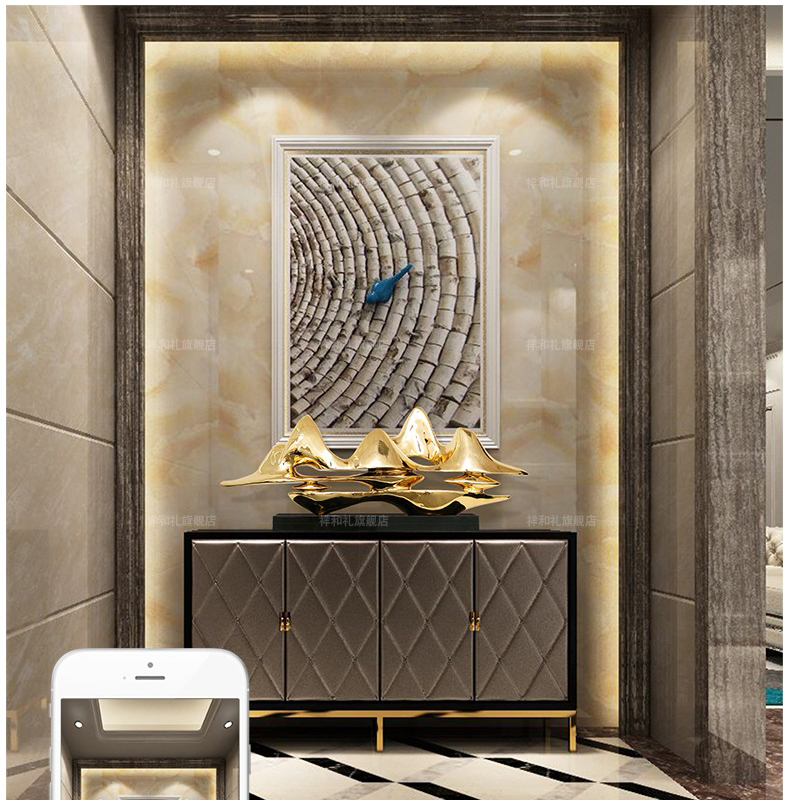 Mô hình đồi núi trùng điệp mạ màu vàng bắt mắt làm sáng bừng không gian nội thất