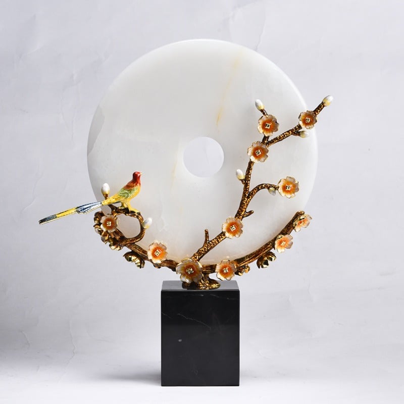 Chất liệu ngọc bích trong mô hình đồng điếu chim khuyên không chỉ mang lại vẻ đẹp tinh tế mà còn mang đến giá trị phong thủy cao. Ngọc bích được coi là vật liệu quý trong phong thủy, giúp thu hút tài lộc và may mắn, đồng thời xua đuổi năng lượng xấu. Sự kết hợp giữa hình tượng chim khuyên và chất liệu ngọc bích tạo ra một món đồ decor phòng khách hoàn hảo, không chỉ đẹp mắt mà còn mang lại nhiều lợi ích cho gia đình.