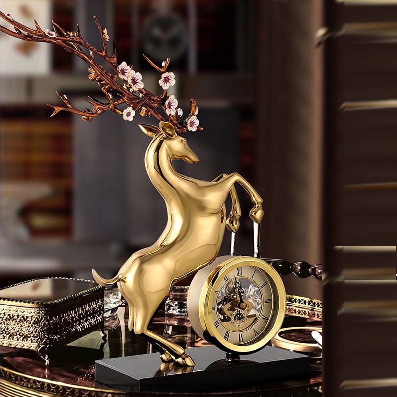 Đồng hồ để bàn hươu Sika mẫu decor với ý nghĩa phong thủy cực tốt lành