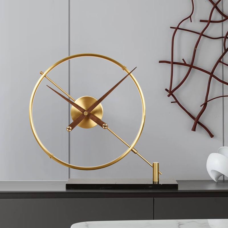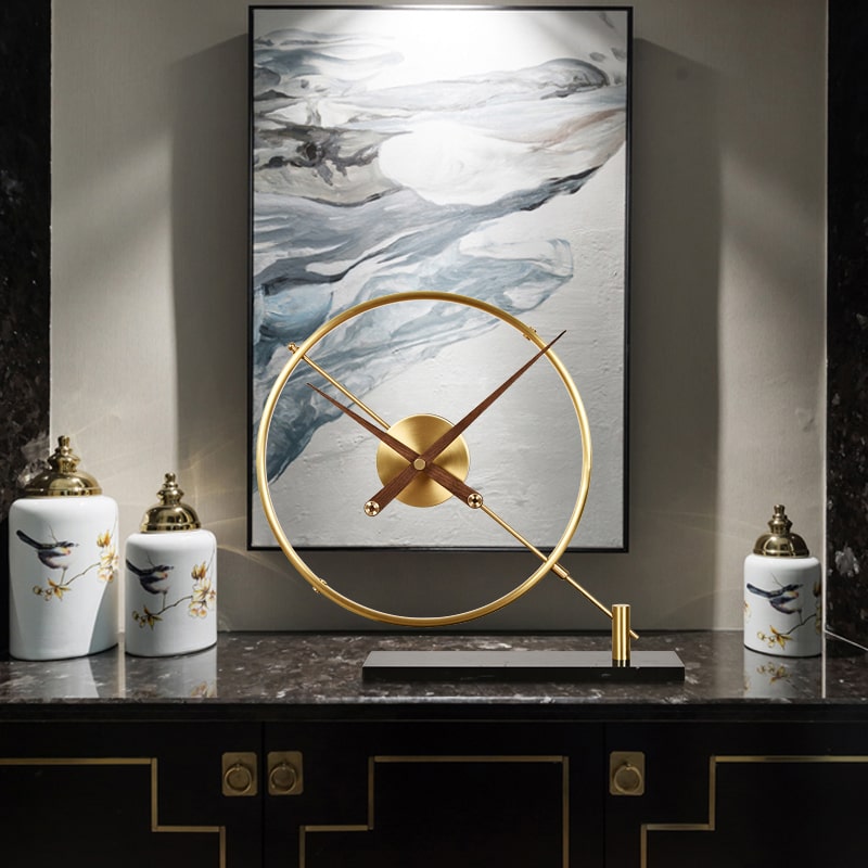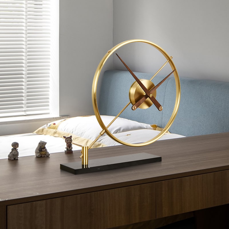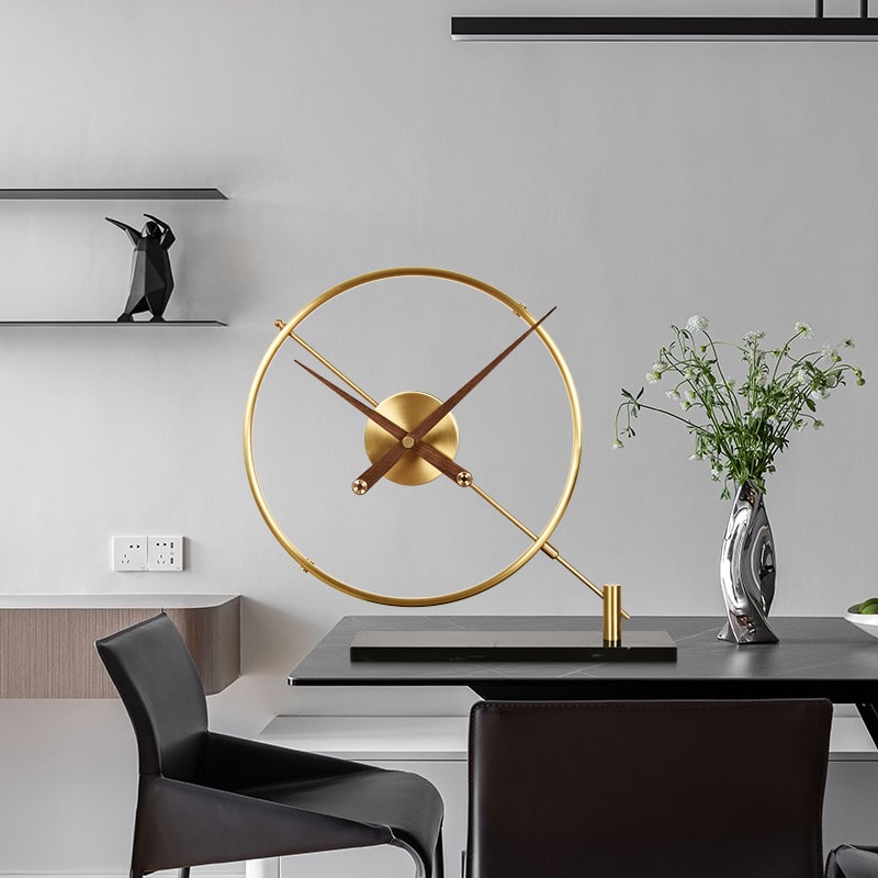 Chất liệu: đế đá, khung đồng, kim gỗ óc chó