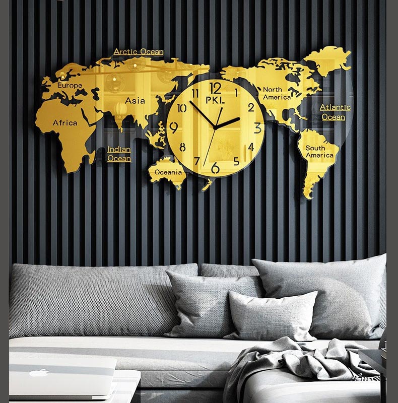 - Thẩm Mỹ Cao: Thiết kế bản đồ Thế Giới hiện đại với màu vàng sáng bóng tạo điểm nhấn ấn tượng cho không gian sống của bạn. Đồng hồ này mang lại vẻ đẹp vừa hiện đại vừa thanh lịch cho ngôi nhà.
