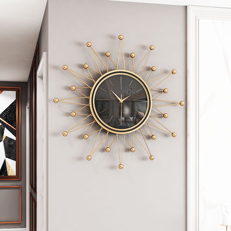 Chiếc đồng hồ treo tường hình ngôi sao này có kích thước 72cm x 72cm, lý tưởng để treo trong không gian phòng khách, phòng ăn hay các không gian làm việc rộng lớn. Trọng lượng 3kg giúp sản phẩm có độ ổn định cao khi treo trên tường mà không bị rung lắc trong suốt quá trình sử dụng. Đồng hồ được làm từ chất liệu hợp kim cao cấp, mang lại độ bền vượt trội và vẻ ngoài sáng bóng, sang trọng. Các chi tiết kim loại được chế tác tỉ mỉ, tạo nên một hình ngôi sao lộng lẫy với các tia sáng tỏa ra từ giữa đồng hồ.