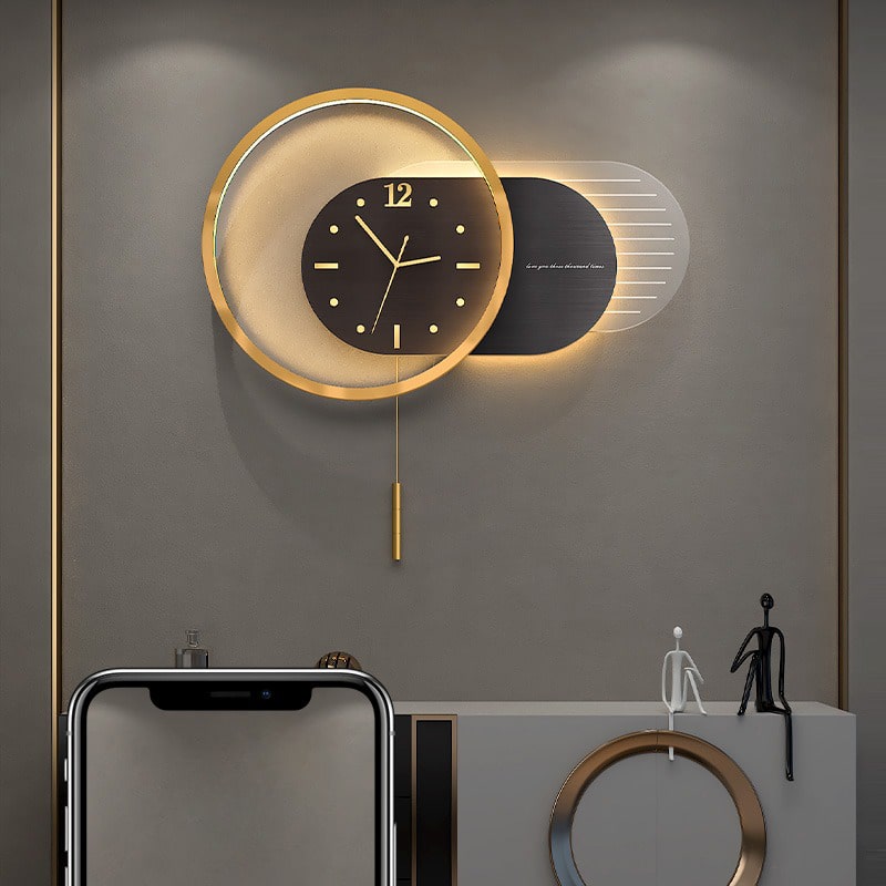 Đồng hồ treo tường kết hợp đèn Led mẫu decor nội thất sáng tạo