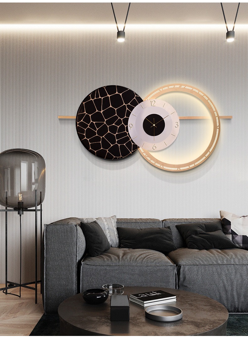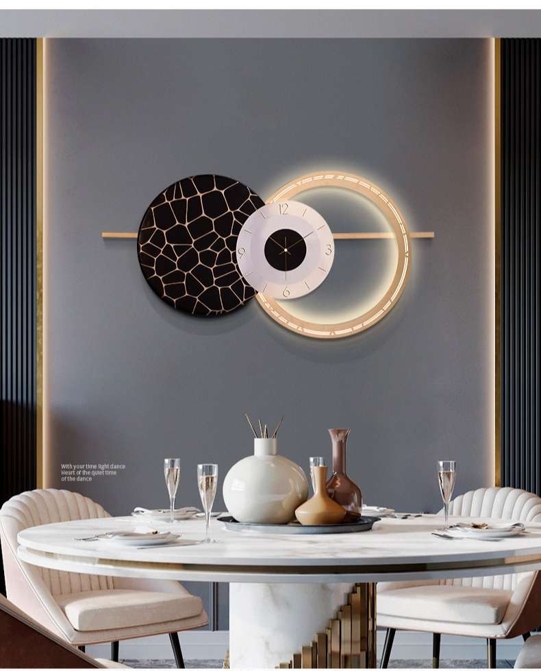 Phòng khách là nơi bạn tiếp đón bạn bè và người thân, vì vậy nó cần phải đẹp và ấn tượng. Đồng hồ treo tường sáng tạo không chỉ giúp làm nổi bật không gian mà còn tạo ra một cảm giác thoải mái, dễ chịu cho những người trong phòng. Đồng hồ này với ánh sáng sang trọng từ đèn LED sẽ làm tăng thêm phần ấm cúng và huyền bí cho không gian phòng khách.