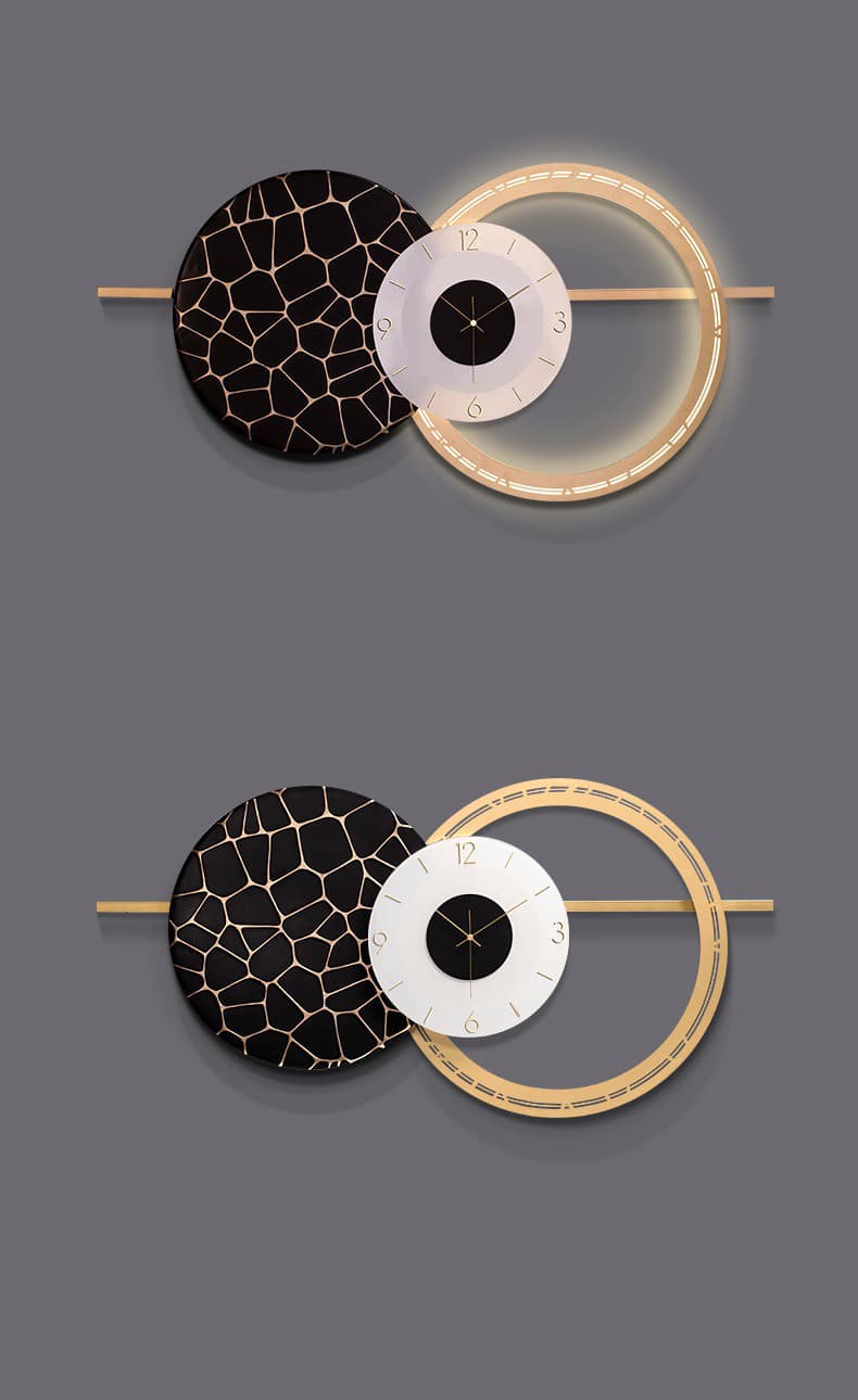Đồng hồ với các đường nét sắc sảo và sự kết hợp giữa kim loại và nhựa composite giúp tạo ra hình ảnh thanh thoát, tinh tế. Hình dáng của đồng hồ tượng trưng cho sự lưu thông của thời gian và năng lượng, giúp thúc đẩy sự thịnh vượng và may mắn cho chủ nhân căn phòng. Bên cạnh đó, với thiết kế hình tròn và các vòng tròn xoay quanh, đồng hồ tạo ra một không gian hài hòa và cân đối, giúp hút vượng khí và xua đuổi năng lượng xấu.