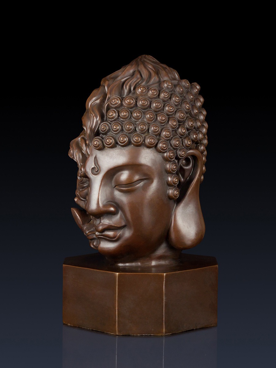Mẫu tượng đầu phật thiện ác bằng đồng giả cổ cao cấp