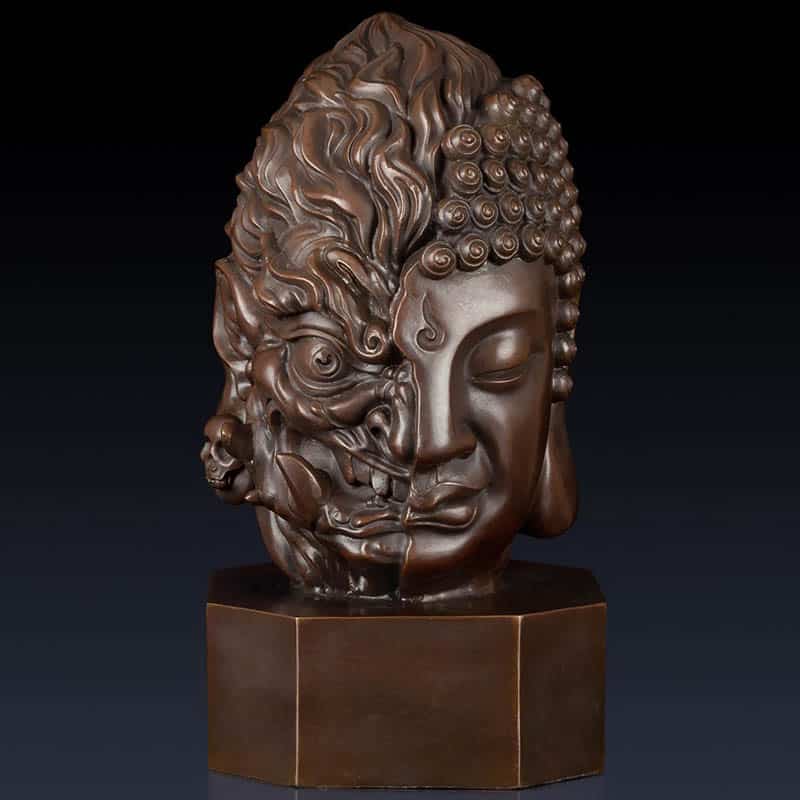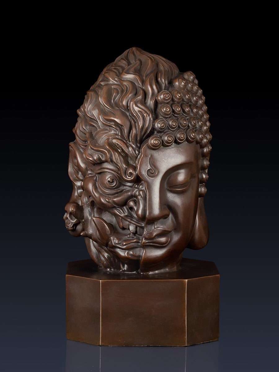 Mẫu tượng đầu phật thiện ác bằng đồng