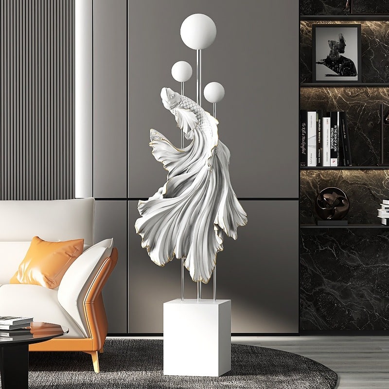 Trong hơn 10 năm qua, Indoorgarden đã thiết kế và thi công hàng ngàn công trình trang trí phòng khách, mang đến những sản phẩm decor độc đáo và sang trọng cho không gian sống. Một trong những sản phẩm nổi bật trong bộ sưu tập của chúng tôi là mô hình cá Betta để sàn. Được chế tác từ chất liệu composite cao cấp, mô hình cá Betta này không chỉ mang đến vẻ đẹp sống động mà còn giúp không gian phòng khách của bạn trở nên hoàn hảo hơn. Hãy cùng tìm hiểu về mô hình này và lý do vì sao nó là sự lựa chọn tuyệt vời cho phòng khách của bạn.