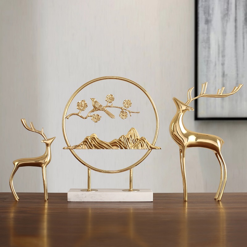 Không chỉ mang đến vẻ đẹp về mặt thẩm mỹ, mô hình chim và hoa còn tạo ra một điểm nhấn hoàn hảo trong không gian phòng khách, thu hút sự chú ý và tạo ra một không gian ấm cúng, sang trọng. Màu sắc sáng bóng của đồng và độ bóng của đá cẩm thạch giúp tăng thêm phần thanh thoát và nổi bật cho căn phòng.