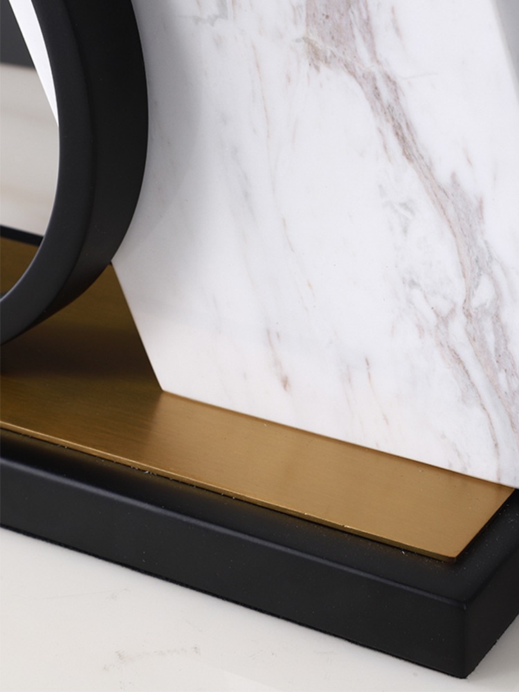 Một trong những yếu tố làm nên vẻ đẹp của mô hình chữ nhật trang trí để bàn chính là chất liệu của nó. Sản phẩm được chế tác từ kim loại và đá cẩm thạch – hai chất liệu vừa mang đến sự sang trọng, bền bỉ, vừa tạo cảm giác hiện đại, thanh thoát cho không gian sống của bạn.