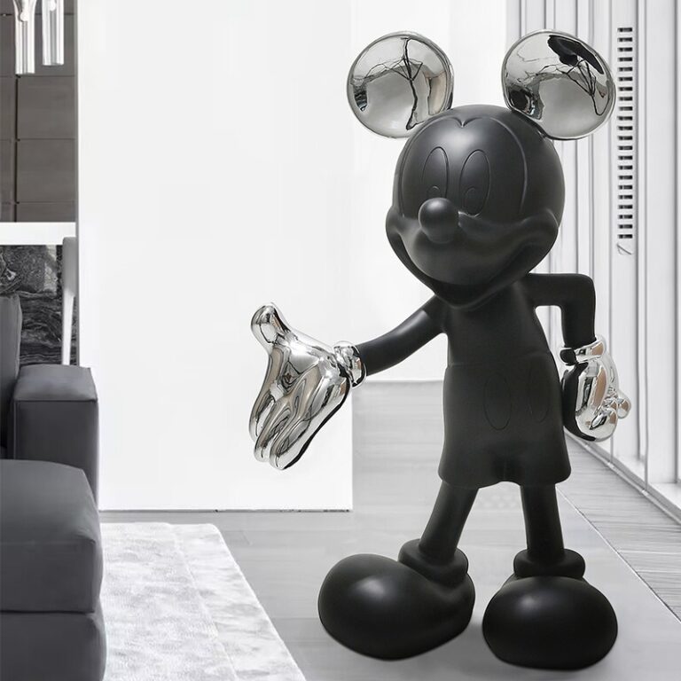 Mô hình chuột Mickey trang trí sảnh không chỉ đơn giản là một món đồ decor, mà còn là một tác phẩm nghệ thuật thực sự. Với thiết kế độc đáo, tượng không chỉ thu hút mọi ánh nhìn mà còn mang đến một không gian phòng khách đầy sáng tạo và phong cách. Đây là món đồ trang trí lý tưởng cho những ai yêu thích nghệ thuật và sự mới mẻ trong thiết kế nội thất. Đặt mô hình này trên kệ tivi, bàn trà hay sảnh vào cửa sẽ tạo điểm nhấn nghệ thuật mạnh mẽ và thú vị.