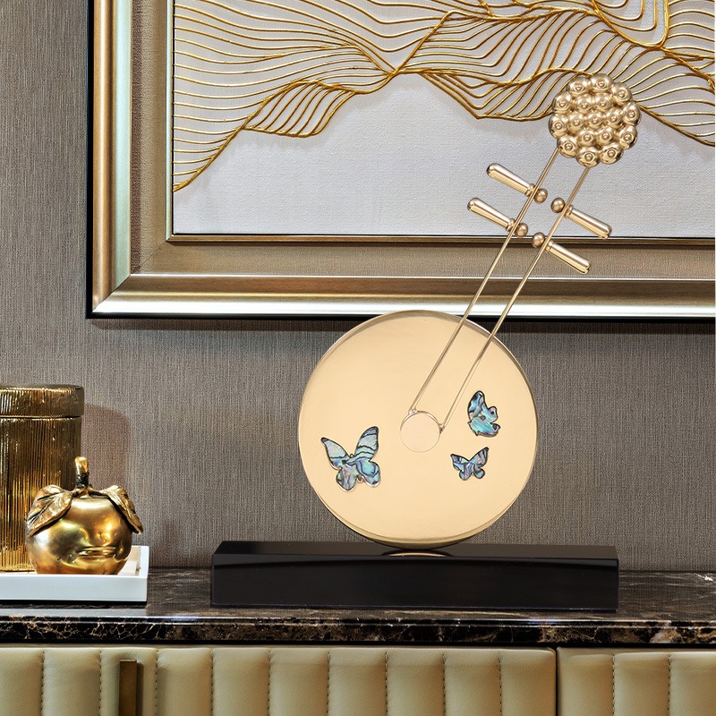 Đặc biệt, những cánh bướm khéo léo được trang trí trên thân đàn cũng mang một ý nghĩa sâu sắc. Bướm trong phong thủy là biểu tượng của sự biến đổi tích cực, sự tự do và những điều tốt đẹp. Việc đặt mô hình đàn tỳ bà trong phòng khách sẽ giúp tăng cường sự may mắn, sự bình an và hòa hợp trong gia đình.