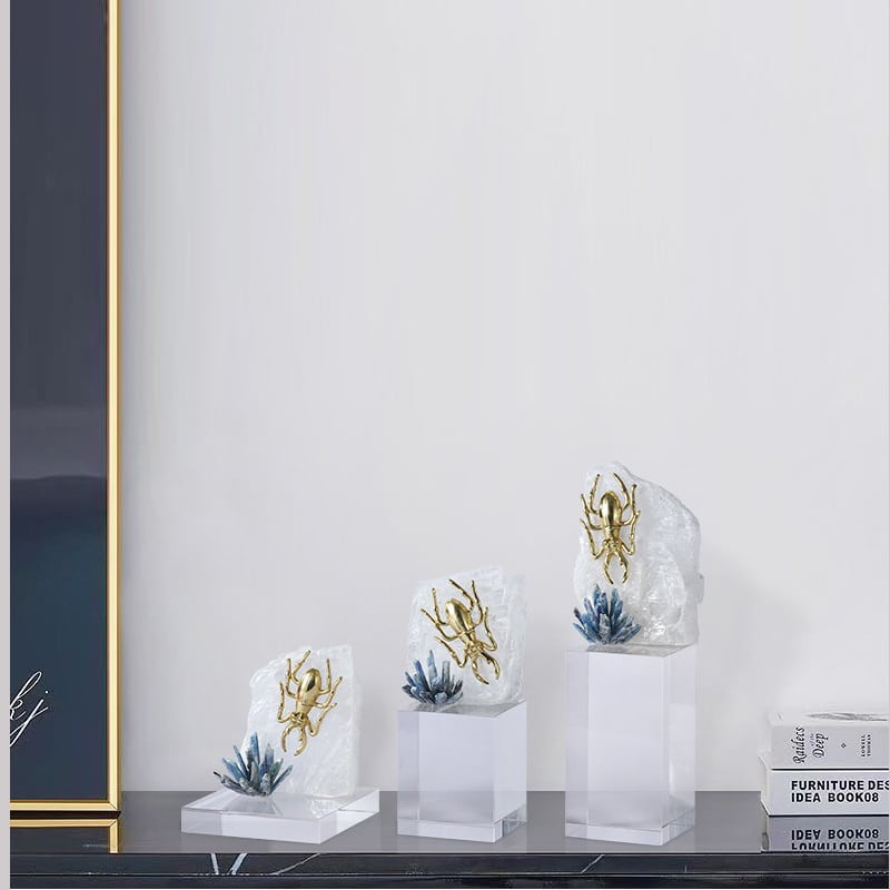 Mô hình động vật nhện kết hợp pha lê để kệ tivi