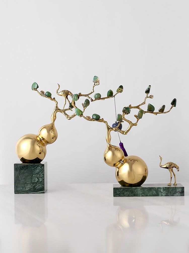 Trong không gian phòng khách, việc sử dụng những món đồ decor tinh tế không chỉ giúp làm đẹp không gian mà còn mang lại những giá trị phong thủy tích cực. Một trong những món đồ decor phòng khách đang được ưa chuộng hiện nay chính là mô hình hồ lô tài lộc để bàn. Với thiết kế hiện đại, sang trọng cùng chất liệu đồng, đá mã não và đá cẩm thạch, mô hình hồ lô không chỉ làm tăng vẻ đẹp thẩm mỹ mà còn mang lại tài lộc và may mắn cho gia chủ.