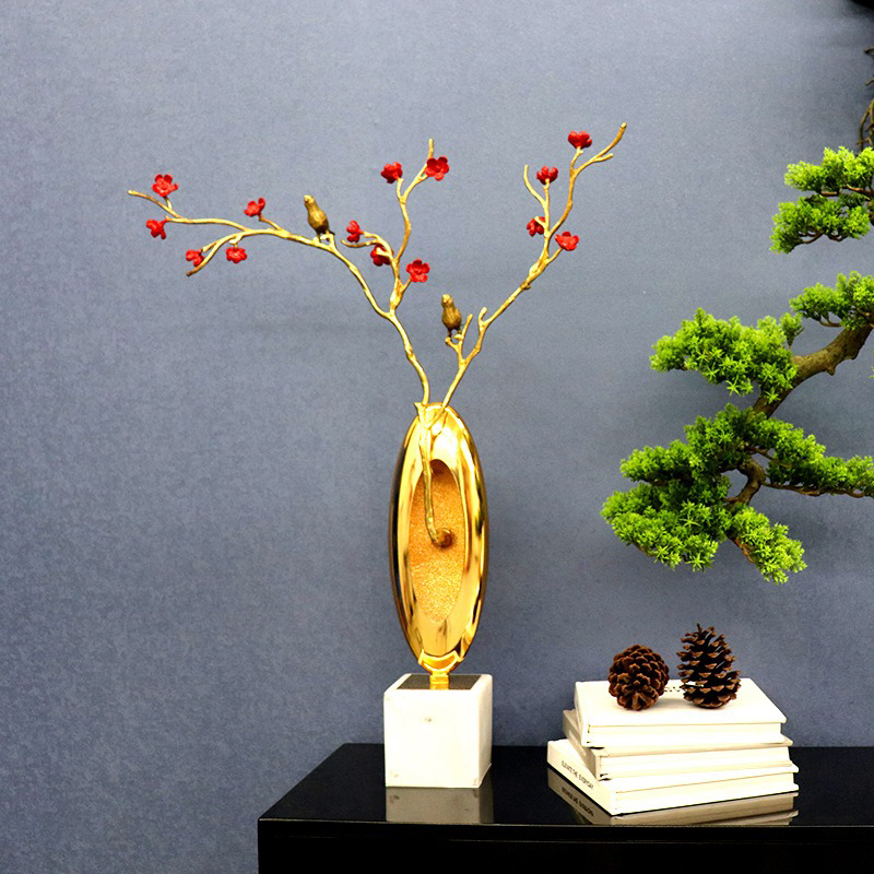 Mô hình hoa mai đỏ trang trí kệ tủ phòng khách sang trọng