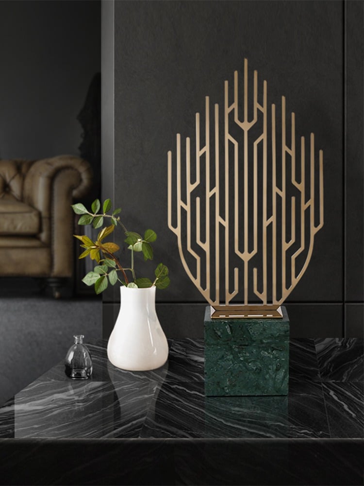 Không chỉ làm đẹp không gian, mô hình lá cây trang trí còn giúp tạo sự cân bằng và hài hòa trong phòng khách. Chất liệu đá cẩm thạch giúp điều hòa năng lượng trong không gian, trong khi hợp kim mang lại sự sắc nét và tinh tế cho sản phẩm. Mô hình này sẽ giúp không gian sống của bạn thêm phần hoàn hảo.