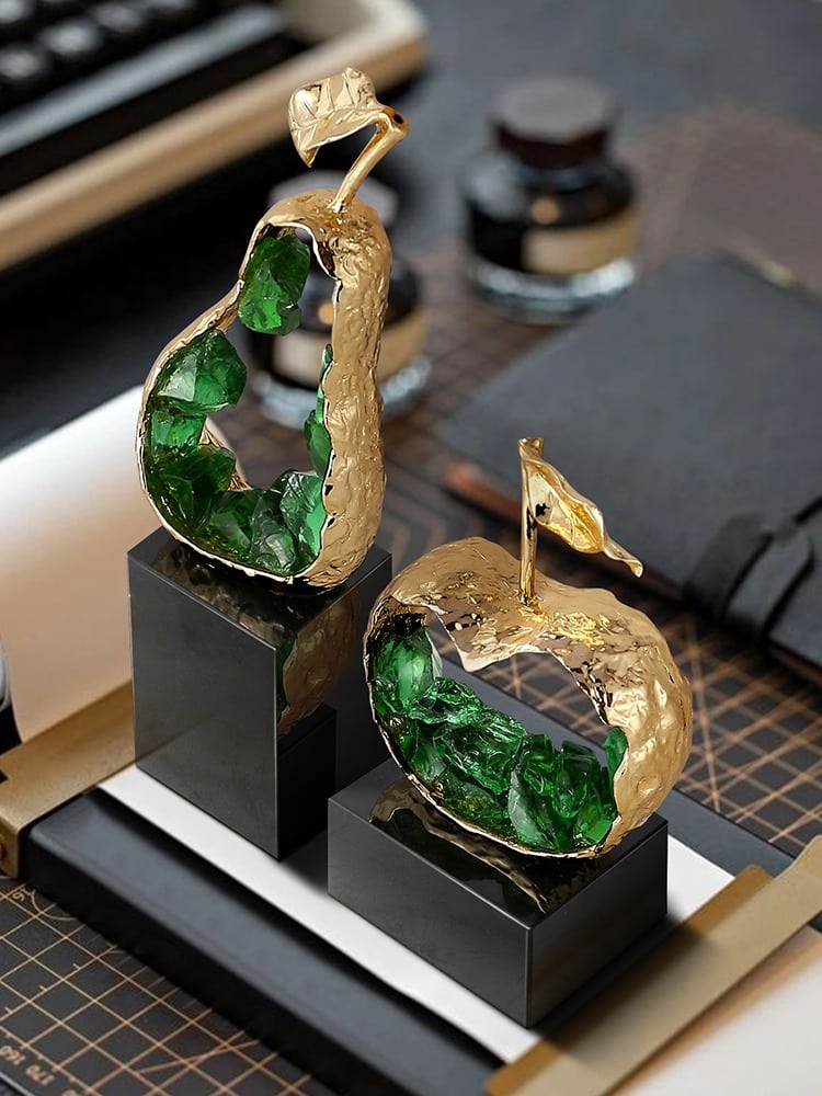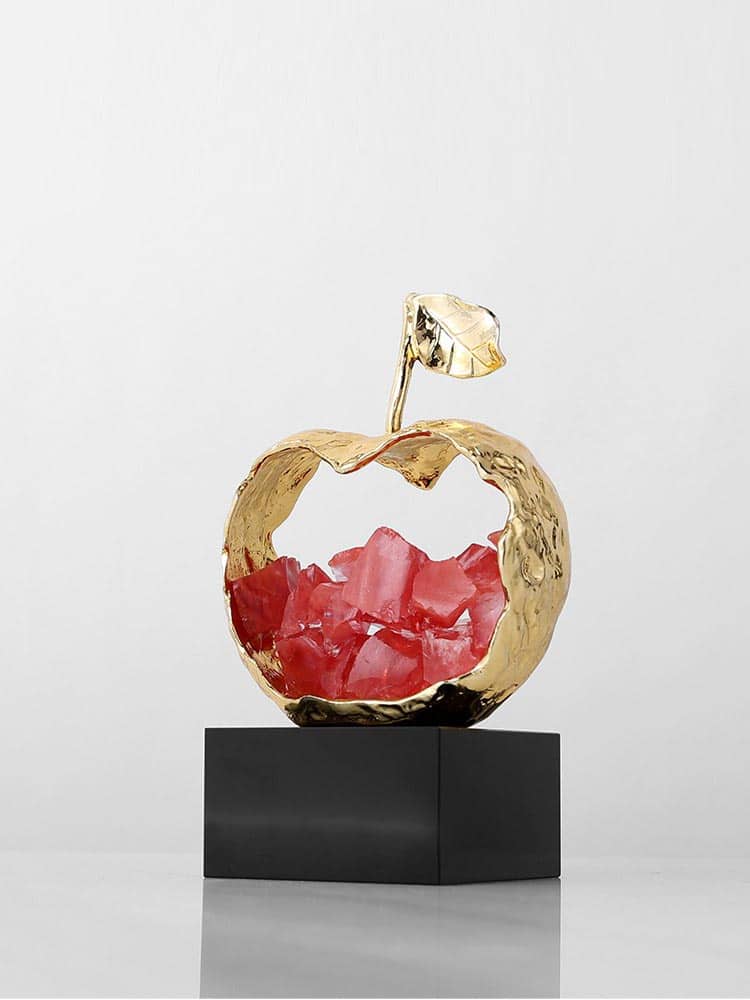 Hợp kim vàng kim giúp tạo điểm nhấn nổi bật trong không gian phòng khách, khiến mô hình quả trang trí trở thành một tác phẩm nghệ thuật đắt giá. Chất liệu này có thể phản chiếu ánh sáng một cách tuyệt vời, làm tăng thêm vẻ đẹp lộng lẫy của mô hình.