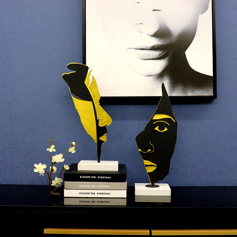 Mô hình tríu tượng bày kệ tủ phòng khách hiện đại được làm từ những chất liệu cao cấp như hợp kim và đá cẩm thạch, mang lại vẻ đẹp tinh tế và sự bền vững qua thời gian. Mỗi mô hình, dù là mẫu lông vũ hay mẫu mặt người, đều được gia công tỉ mỉ, từ đó tạo nên những sản phẩm không chỉ đẹp mắt mà còn bền bỉ theo thời gian.