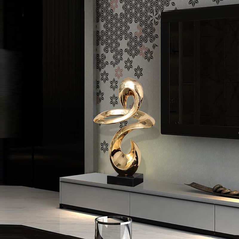 Với thiết kế đặc biệt, mô hình uốn lượn nghệ thuật để sàn là một món đồ decor phòng khách vô cùng ấn tượng. Mô hình này thường được đặt ở những khu vực như cạnh sofa, kệ tủ hay bàn trà, giúp không gian phòng khách thêm phần sang trọng và hiện đại.