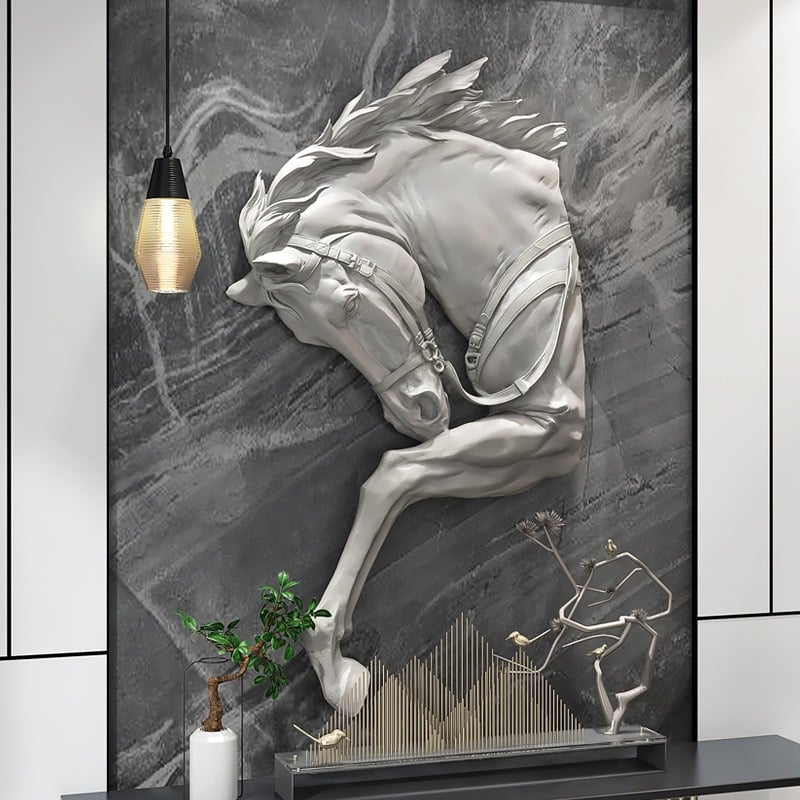 Phù điêu 3D đầu ngựa trang trí tường hiện đại