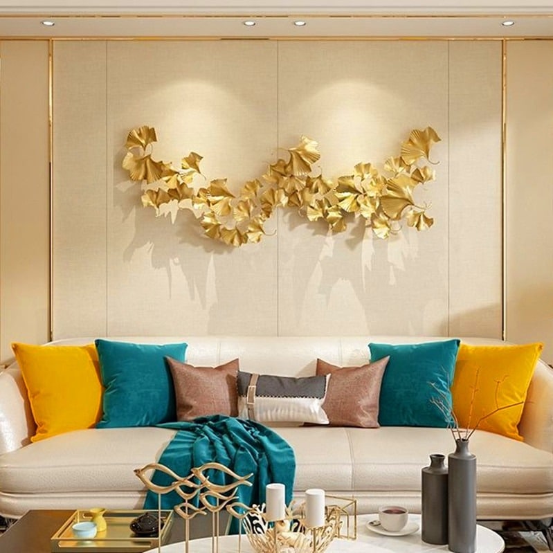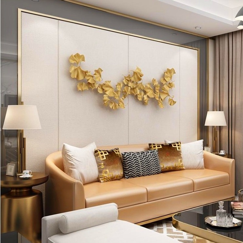 Phù điêu nghệ thuật hình lá bạch quả với tông màu vàng hiện đại, sang trọng