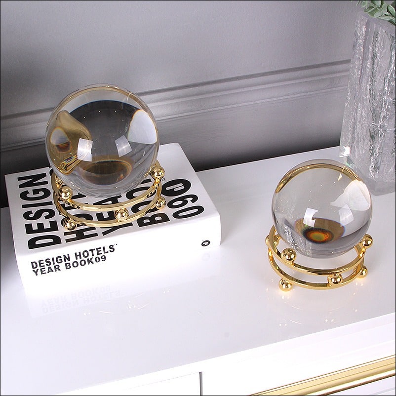 Quả cầu pha lê trong suốt bày cùng bình hoa đẹp mắt