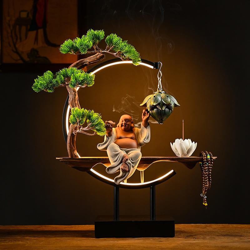 Thác khói trầm hương Phật Di Lặc thờ tại gia