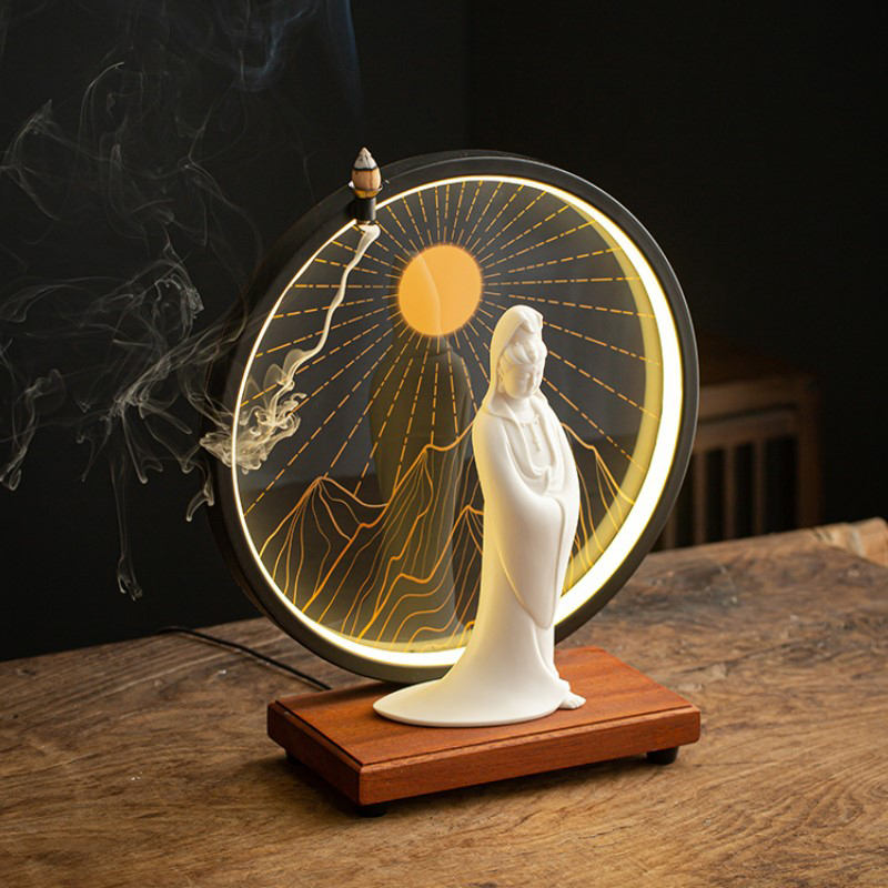Thác khói trầm hương Phật Quan Âm tỏa ánh hào quang