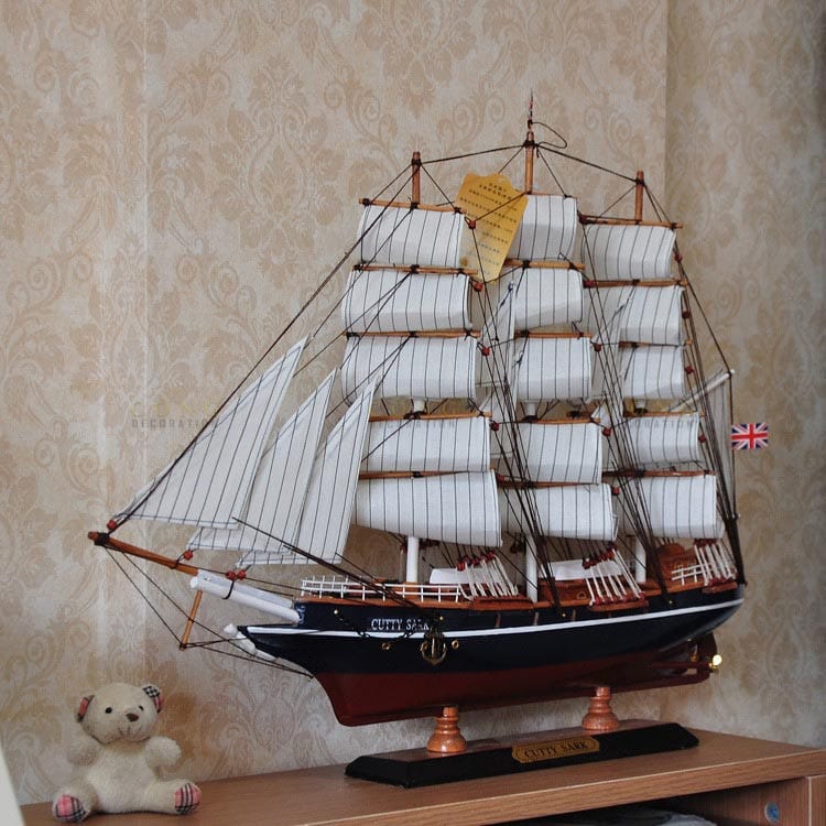 Thuyền buồm phong thủy bằng gỗ mô phòng lại con thuyền ngoài đời thực một cách chi tiết