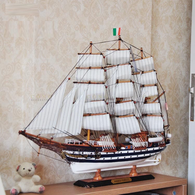 Thuyền buồm phong thủy bằng gỗ được làm hoàn toàn thủ công