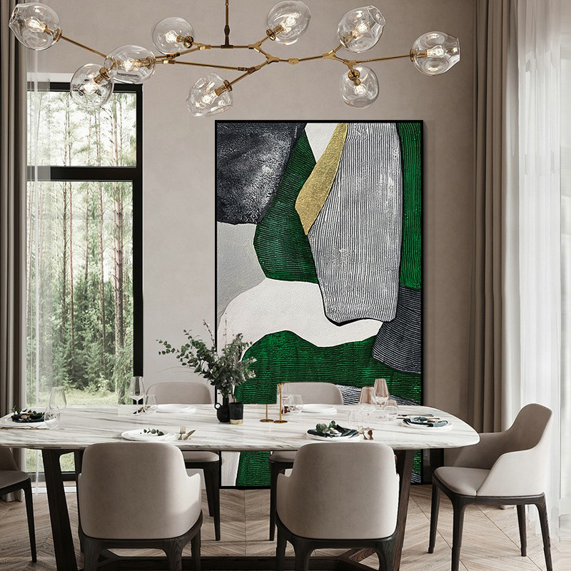 - Phong Cách Hiện Đại: Tranh sơn dầu trừu tượng hoặc tranh phong cảnh thiên nhiên với màu sắc nổi bật sẽ tạo điểm nhấn mạnh mẽ cho không gian phòng khách, phòng làm việc.