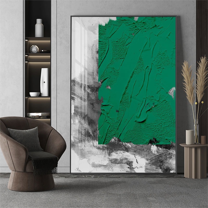 Tranh sơn dầu trìu tượng với tông màu chủ đạo xanh lá cây