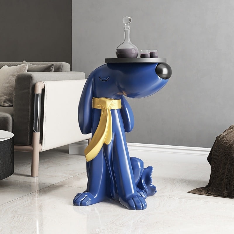 Khay mà chú chó bồi bàn dễ thương cầm trên đầu có thể được dùng để đặt các vật phẩm trang trí nhỏ như ly nước, hoa tươi, hay đồ vật phong thủy. Sự kết hợp này giúp mang lại một không gian sống hài hòa, đầy năng lượng tích cực và thu hút tài lộc vào nhà. Ngoài ra, nó cũng tạo ra một điểm nhấn đặc biệt cho phòng khách, giúp không gian thêm phần thú vị và độc đáo.
