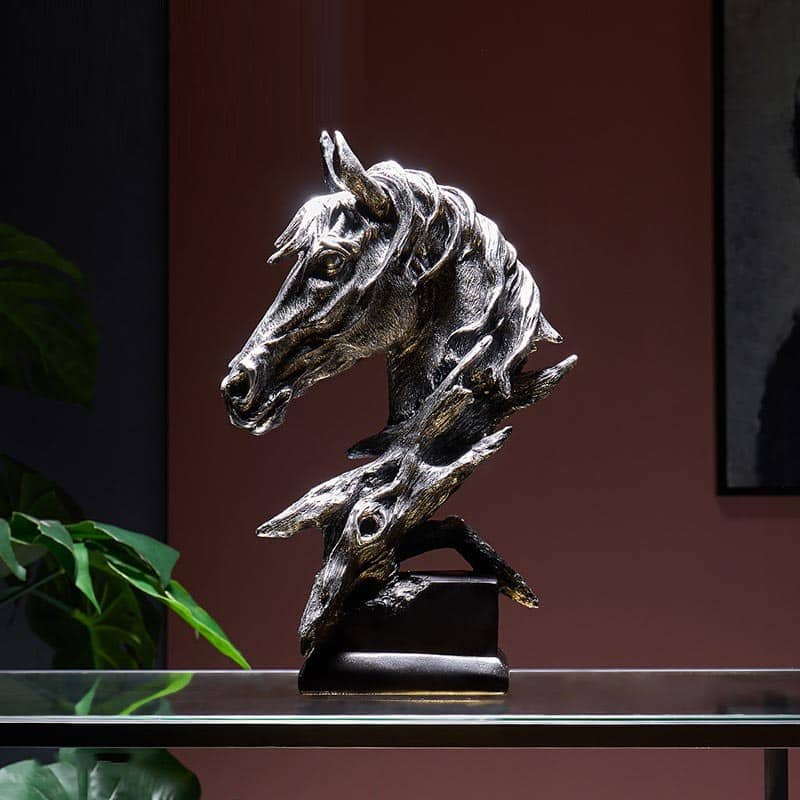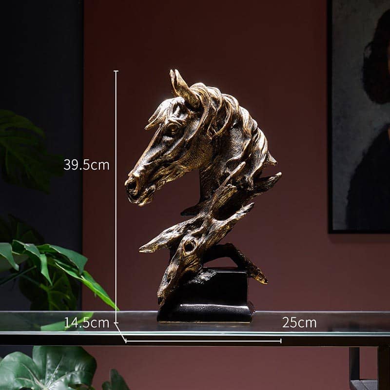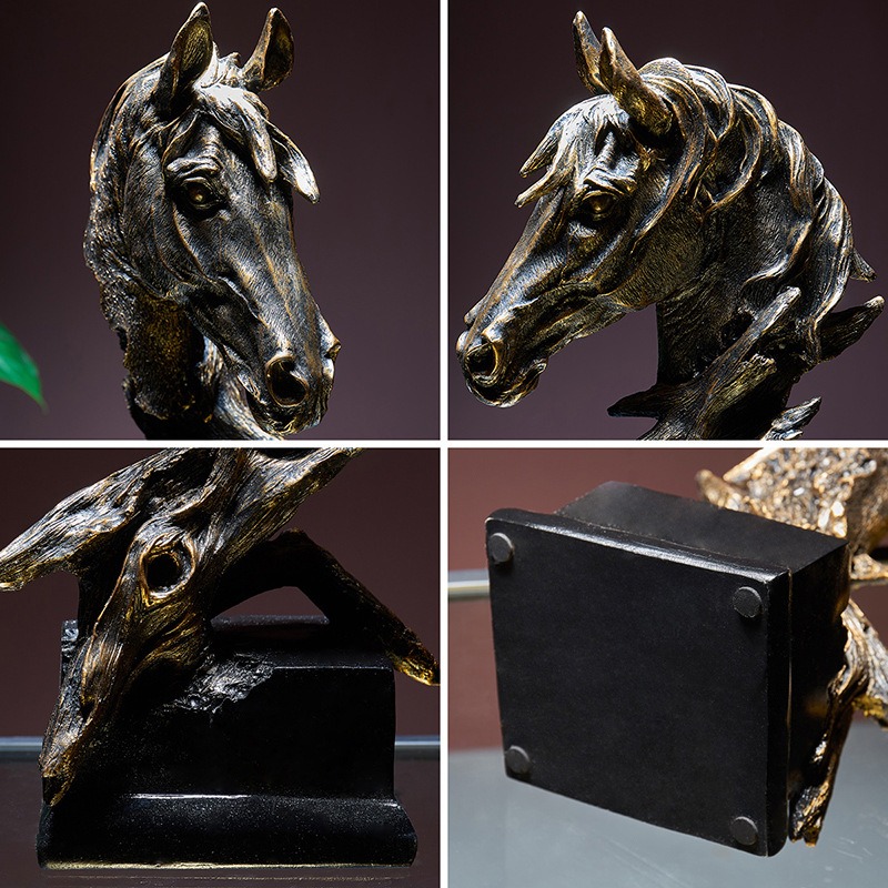 Với phong cách Vintage cổ điển, tượng đầu ngựa mang đến vẻ đẹp thanh thoát và sang trọng. Những đường nét mềm mại, kết hợp với sự mạnh mẽ của hình ảnh ngựa, tạo ra một tác phẩm nghệ thuật độc đáo cho không gian phòng khách.
