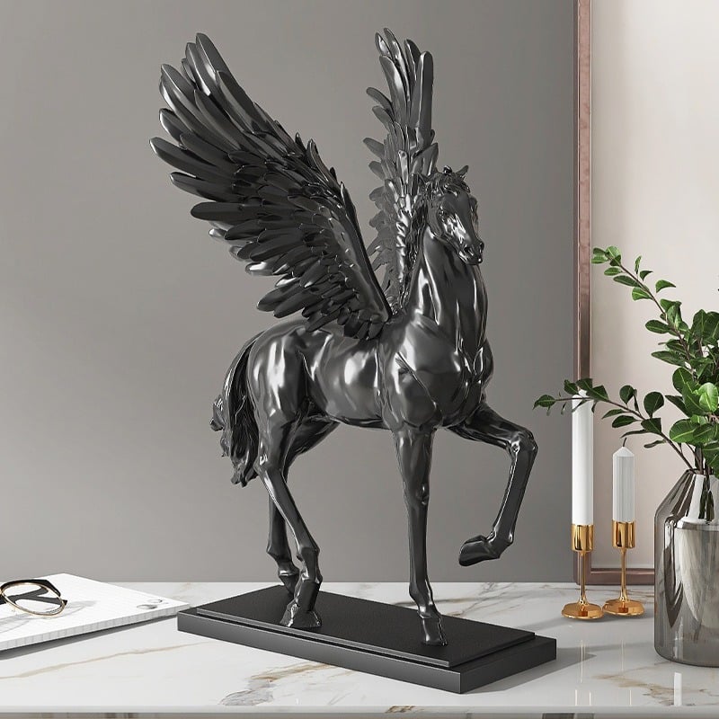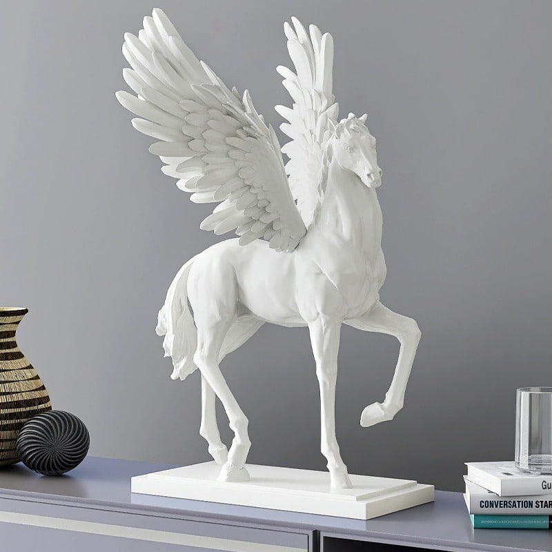 Tượng ngựa thiên thần không chỉ là một vật trang trí mà còn là một tác phẩm nghệ thuật, mang lại sự mới mẻ và sáng tạo cho không gian. Mỗi chi tiết của tượng đều thể hiện sự tinh tế, tạo ra một không khí sống động và đầy cảm hứng trong phòng khách.