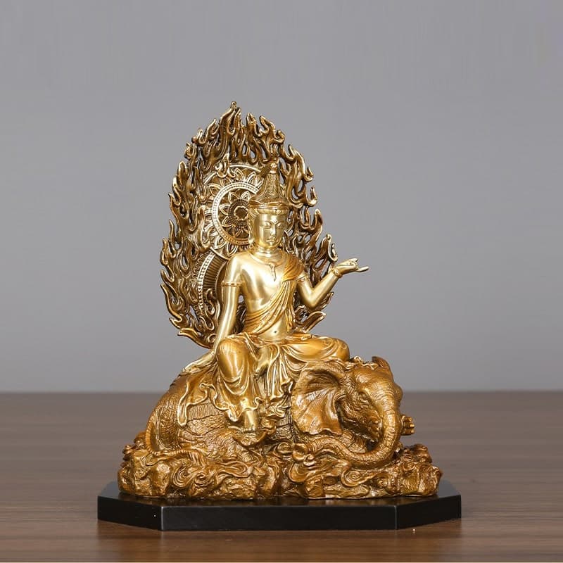 - Thánh Phổ Hiền: Biểu tượng của lòng từ bi và sự hòa hợp. Thánh Phổ Hiền giúp gia chủ đạt được sự bình an trong tâm hồn và xây dựng các mối quan hệ hòa thuận trong gia đình và cộng đồng.